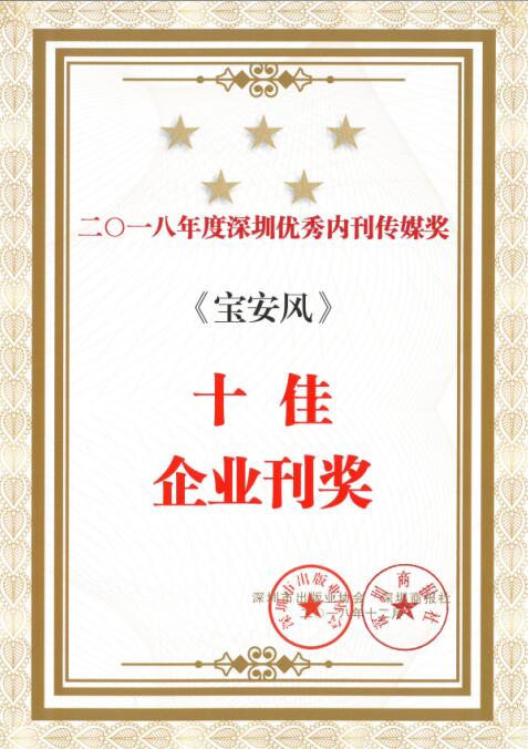 12月14日, 2018深圳内刊界总结交流大会暨“优秀内刊传媒奖”表彰大会召开,集团内刊《半岛电子(中国)风》在四百多家企业内刊中脱颖而出,再度获评“十佳企业刊奖”,同时斩获“优秀经济专题”等3个单项奖。